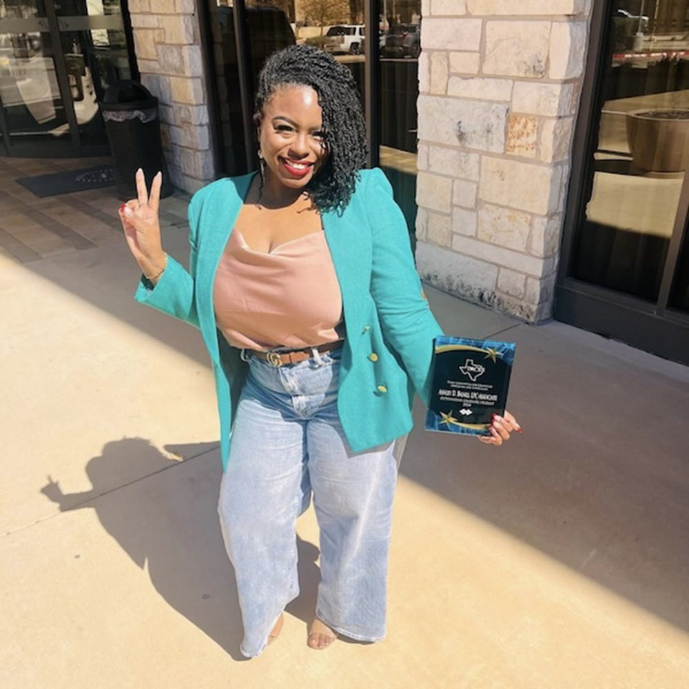 Baines’ resilience throughout her journey in higher education reached prestigious heights such as being named Graduate Student of the Year by the Texas Association for Counselor Education and Supervision. One of her most impactful experiences was participating in Advocacy Day at the Capitol with the TCA, where she had the chance to elevate the voices and needs of students and counselors.