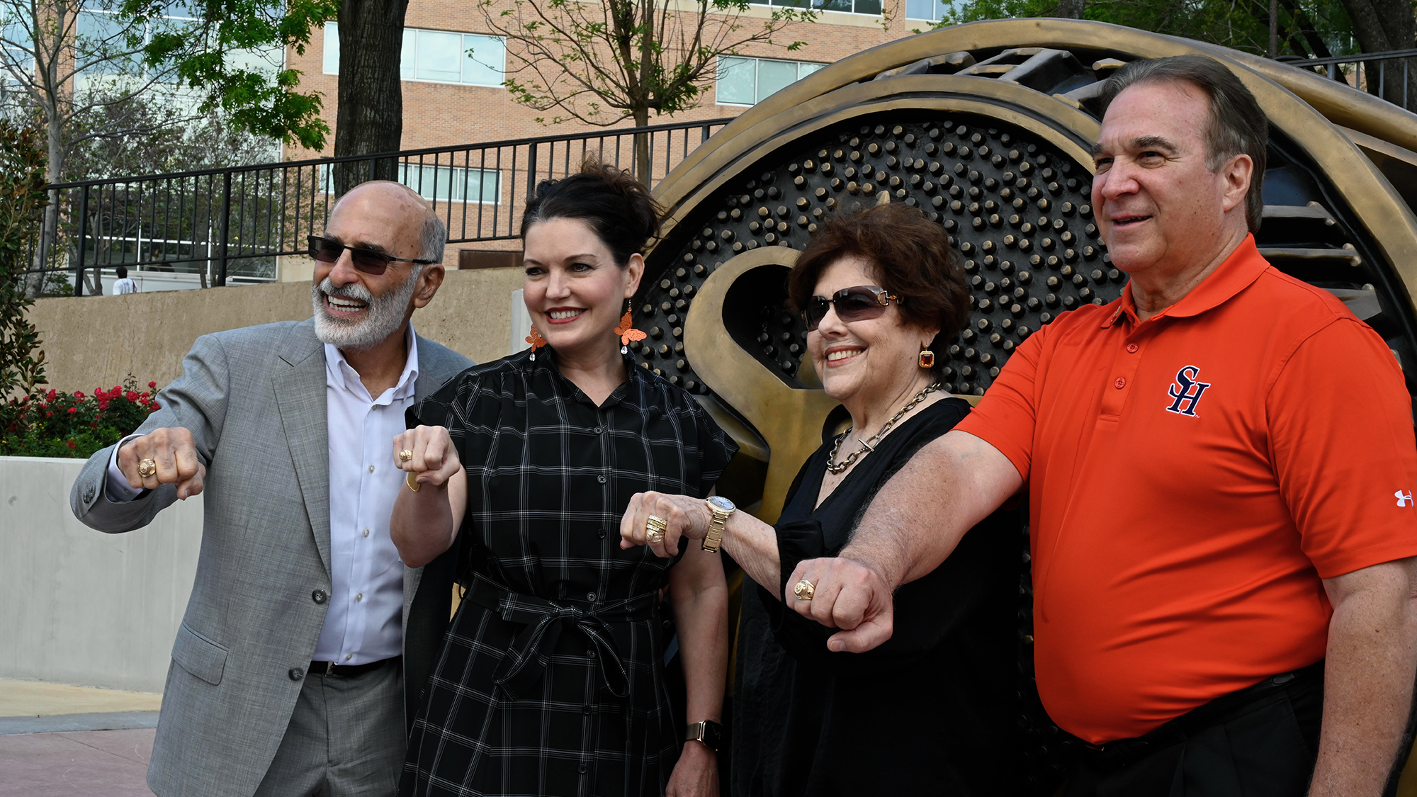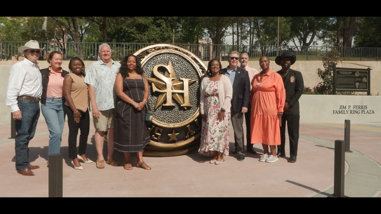 Sam Houston State University is taking one of its most beloved traditions to the next level thanks to some help from generous Bearkat alumni. On March 26, the university unveiled The Jim P. Ferris Family Ring Plaza, which features a nine-foot-tall replica of an SHSU ring.